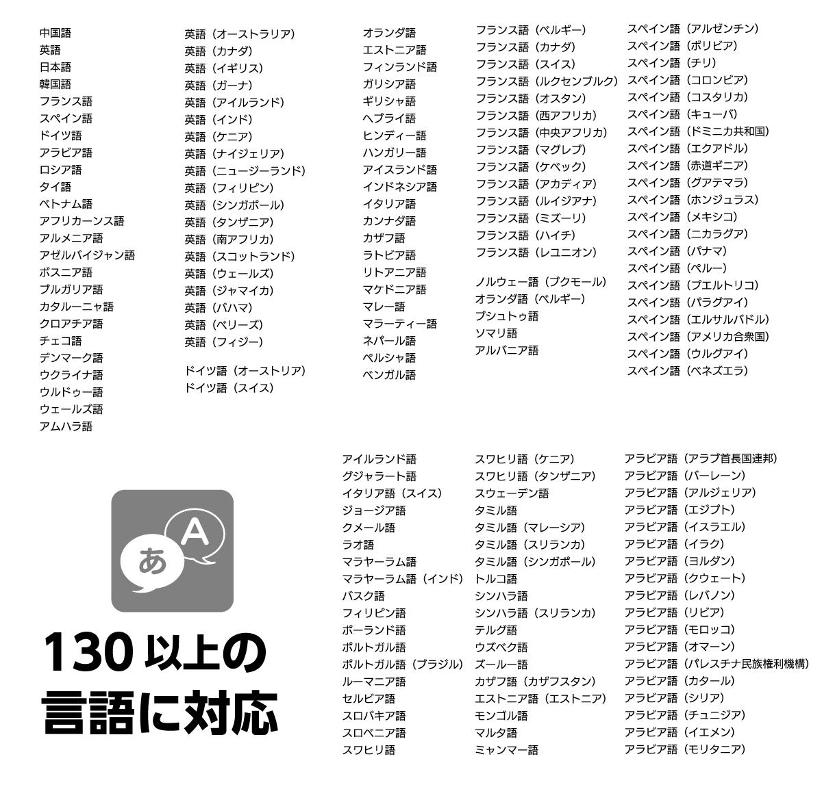 対応言語は130言語以上!
