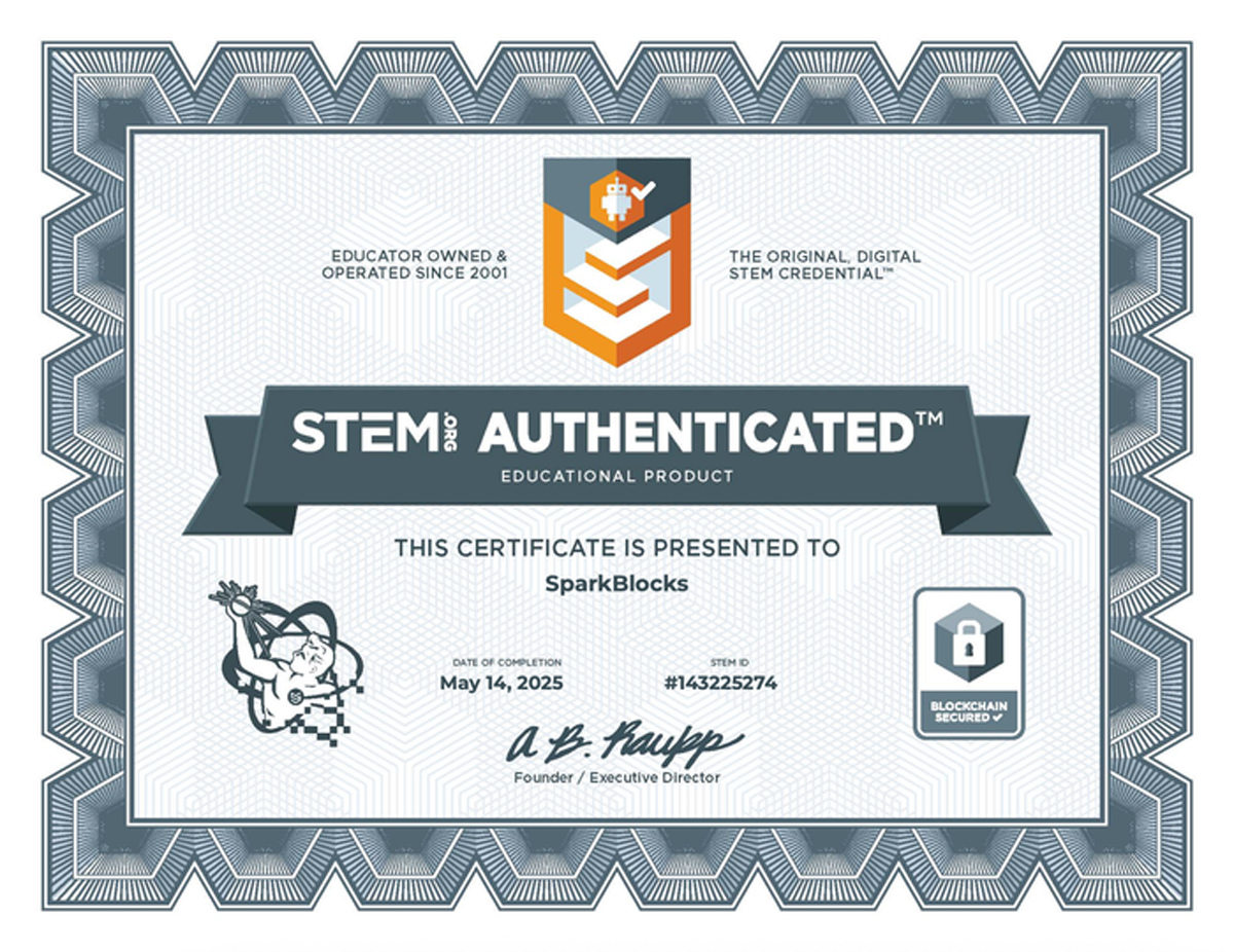 SparkBlocksは、世界的な教育評価機関「STEM.org」の厳格な審査をクリアし、全レビュー対象のトップ5%に贈られる最高ランクの賞を獲得しました。 「確かな教育効果」「使いやすさ」「製品価値」。
