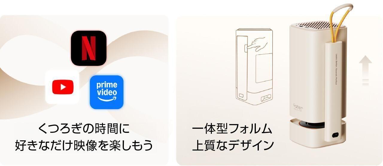 Yaber T1 Pro(ヤバーティーワンプロ)は、狭い部屋でも壁に、天井に、大画面を映せるフルHD対応のプロジェクターです。PCなどのデバイスに接続しなくても、直接NetflixやYouTubeの視聴が可能。大画面・高音質で映像を楽しもう!